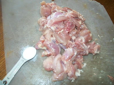 Put second tablespoon of cooking oil in pan.  Add chicken and cook over medium-high heat until lightly browned.